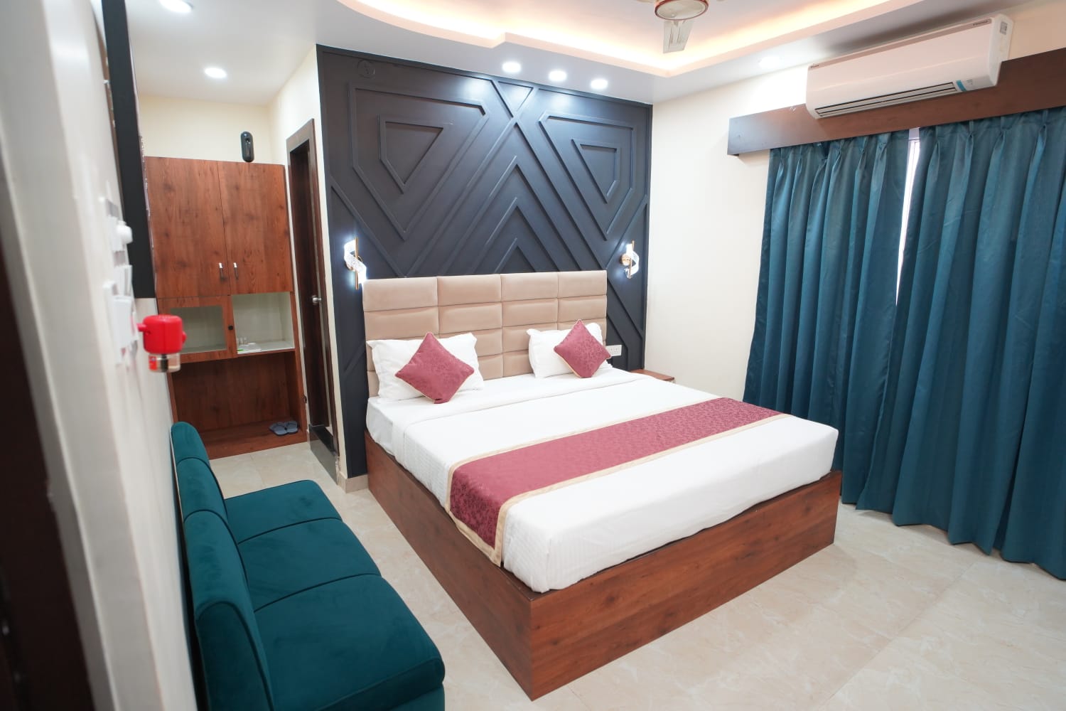 Our Deluxe Room is designed to offer the perfect balance of comfort, elegance, and convenience. Ideal for business travelers, couples, and families, the room features a calm ambiance with modern interiors that ensure a relaxing stay.